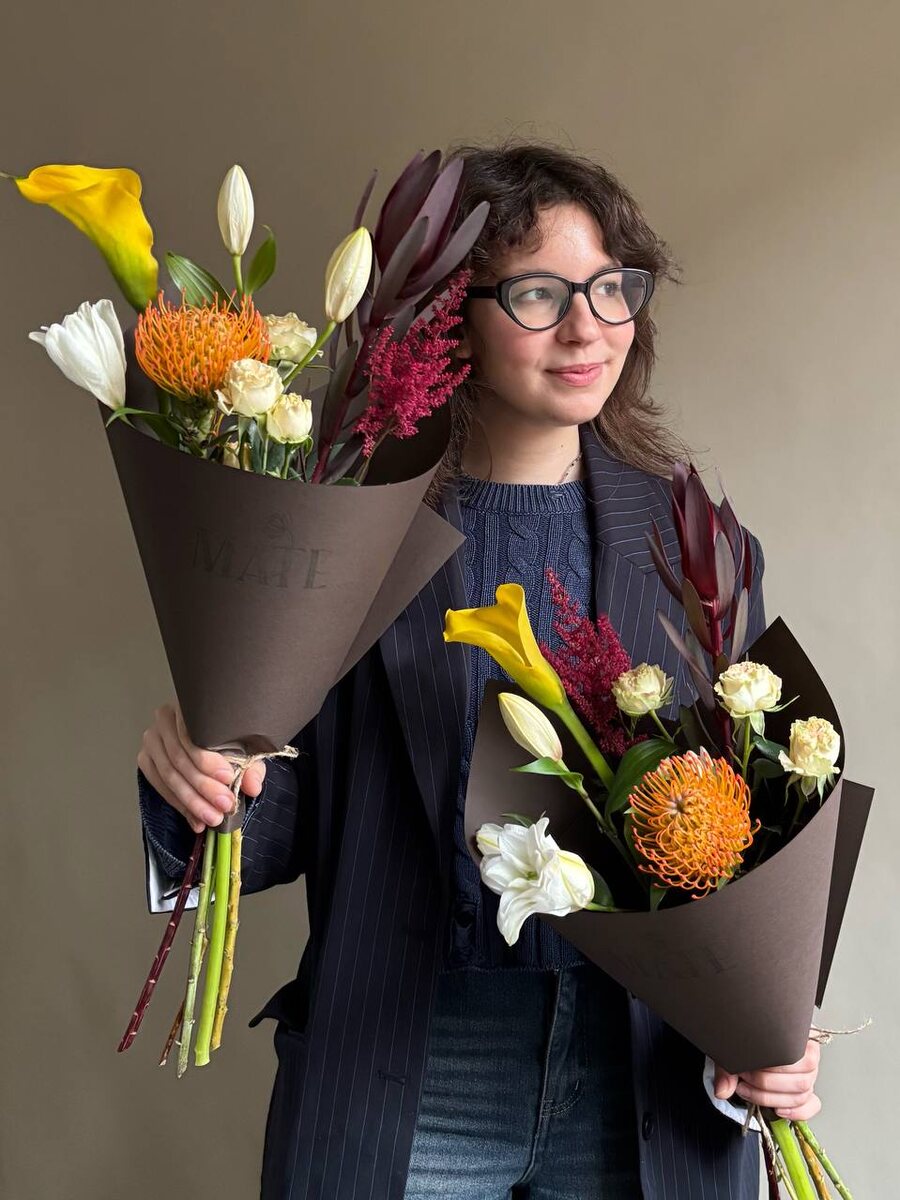 Ну что за осень 🤌🏻 Яркая, насыщенная, живая — как и наши букетики, которые хочется поставить в вазу ❤️🔥 💐 в шоколадном, размер S 2850.- вместо 3450.- Роза Саммер Роуз/нутан/лилия/леукадендрон/калла/астильба 💐 в розовом, размер M 4050.- вместо 4900.- Гортензия/роза Саммер Роуз/нутан/лилия/диантус/леукадендрон/калла/астильба 🪻 в прозрачном, размер L 6000.- вместо 7450.- Роза Ред Пиано/гортензия/скабиоза/солидаго/роза Саммер Роуз/нутан/лилия/диантус/леукадендрон/калла/астильба/эвкалипт Для заказа: @mateflowers_bot