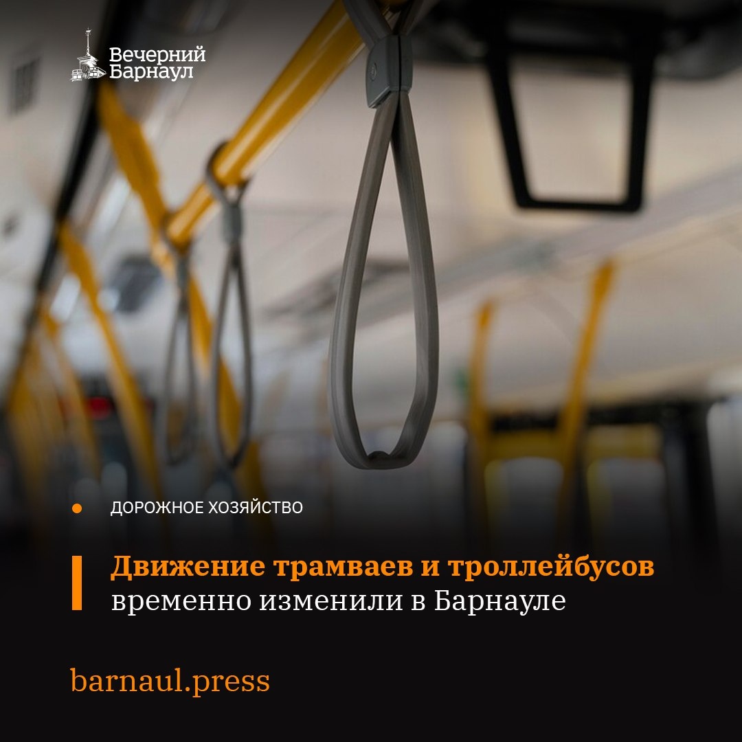 Излом трамвайно-троллейбусного пересечения на перекрёстке проспекта Ленина и улицы Матросова привёл к изменению маршрутов трамваев №1, 3, 7 и троллейбусов №6 и 7. Аварийная бригада уже трудится над устранением дефекта. Теперь трамваи ходят следующим образом: 🔸№1: Докучаево — Попова — Космонавтов — Калинина — Северо-Западная — Антона Петрова — Советской Армии — Челюскинцев — Анатолия — Красноармейский — площадь Свободы (обратно так же). 🔸№3: Пивзавод — Попова — Власихинская — Малахова — Антона Петрова — Северо-Западная — Калинина — Космонавтов — Поток (обратно так же). 🔸№7: Кордон — Красноармейский — Анатолия — Челюскинцев — Советской Армии — Антона Петрова — Попова — Власихинская — Малахова — депо №3 (обратно так же). Троллейбусы на автономном ходу едут по маршруту, остальные так: 🔸№6: Солнечная Поляна — Юрина — Малахова — Космонавтов — депо №4 (обратно так же). 🔸№7: Балтийская — Малахова — Космонавтов — депо №4 (обратно так же). Фото: freepik.com @barnaul