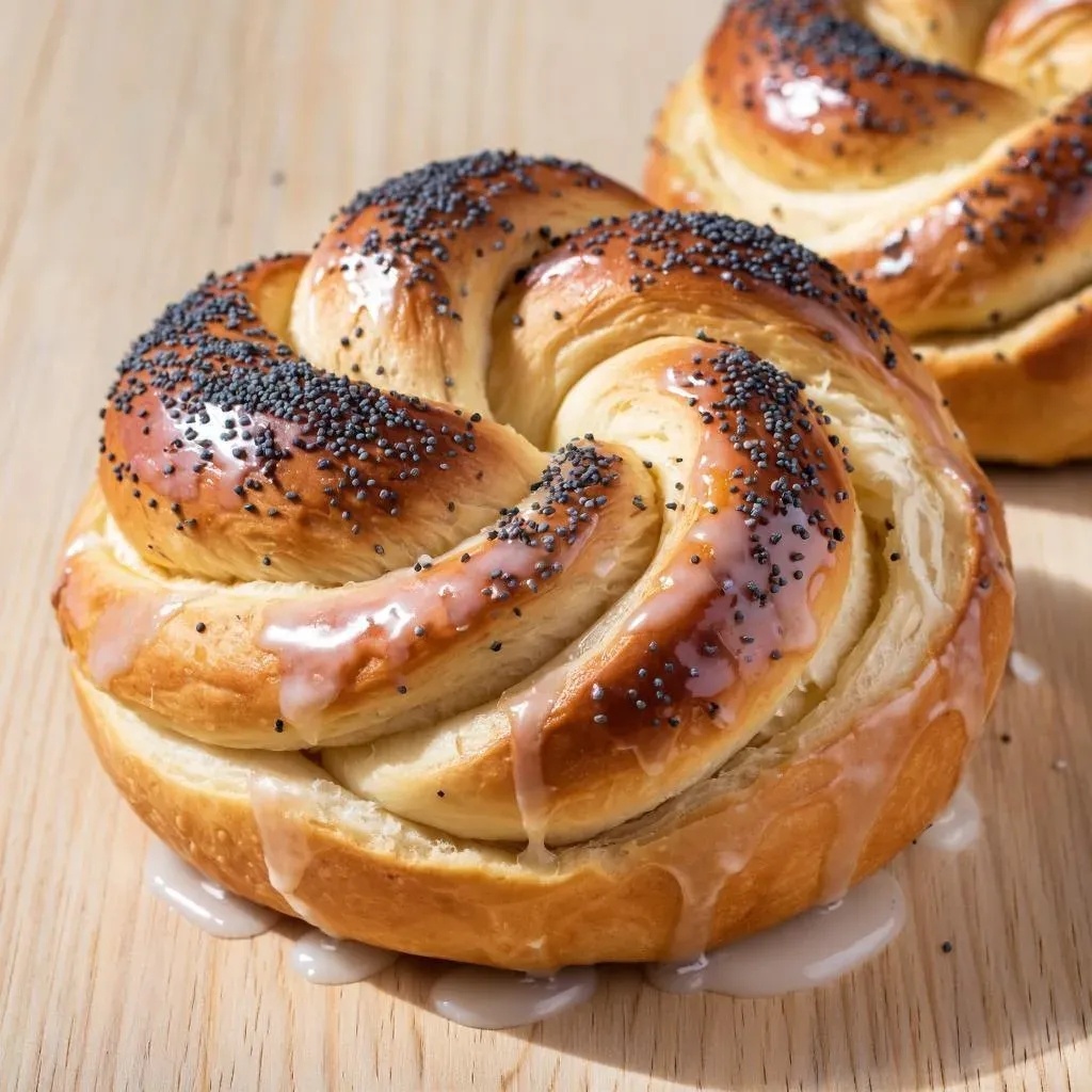 Это великолепное и очень популярное лакомство, особенно в Восточной Европе. Давайте разберём его подробнее. Что это такое? Это сладкая дрожжевая выпечка, которая имеет несколько ключевых особенностей: 1. Многослойность и форма "витушки": Тесто раскатывают, начиняют, сворачивают в рулет, а затем нарезают и "скручивают" в характерные формы, похожие на розочки или улитки. При выпекании слои немного разделяются, создавая воздушную текстуру. 2. Начинка из мака: Используется маковая начинка (маковое молочко или маковый заполнь). Это не просто сухой мак, а перетёртый мак с сахаром, мёдом или вареньем, часто с добавлением молока, масла или сметаны для создания кремовой консистенции. 3. Сладкая глазурь: Сверху булочки покрываются сладкой глазурью, обычно: · Сахарной: просто сахарная пудра, разведённая с водой или лимонным соком. · Белковой: из взбитых белков и сахара, которая после выпекания становится хрустящей. · Шоколадной. Как это готовят (кратко): 1. Замес теста: Готовят сдобно