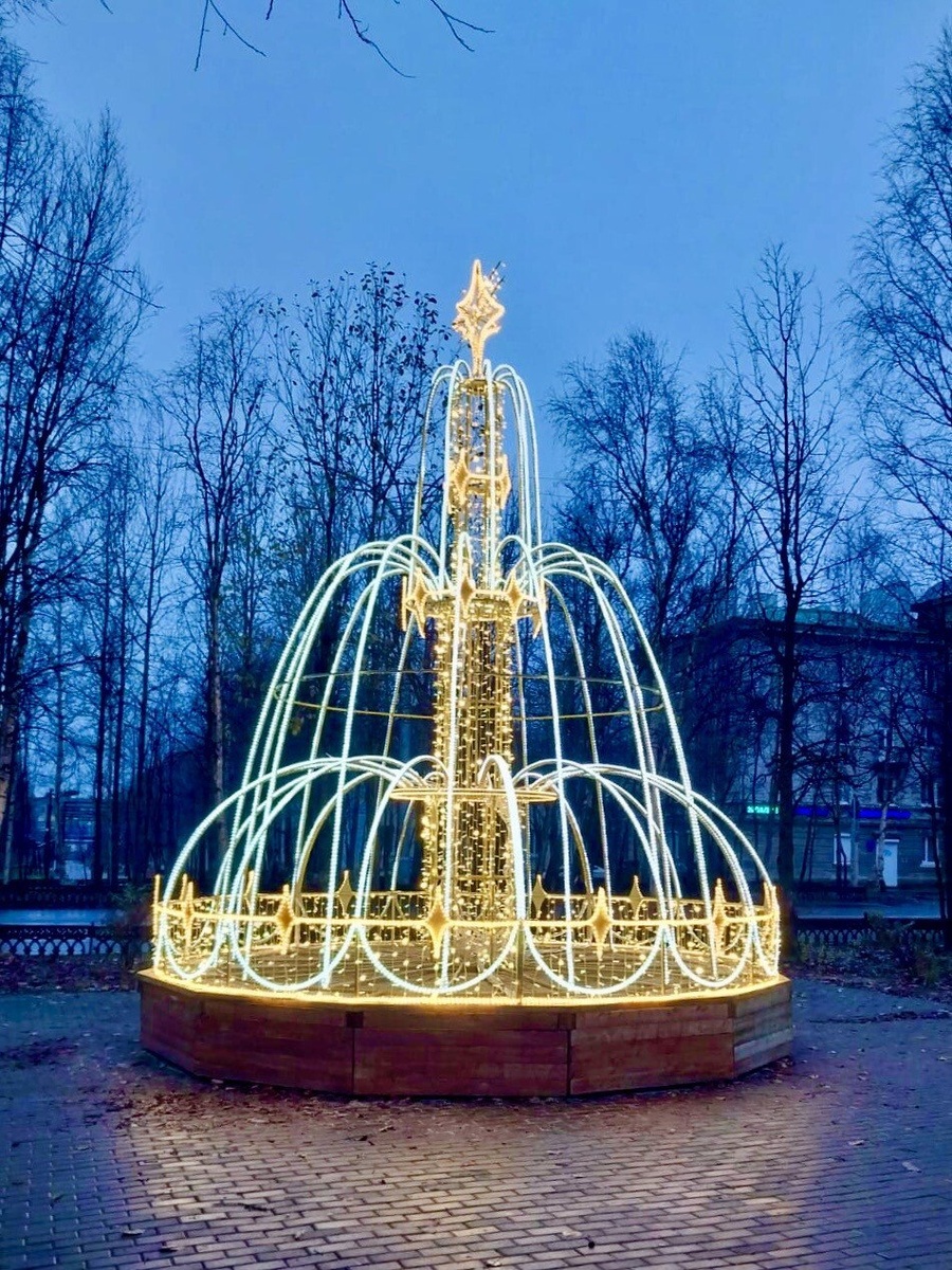 Фонтан на Пяти углах в Мончегорске оделся в свой зимний наряд и снова радует жителей своим ярким сиянием ✨⛲️ Фото Игоря Петрова