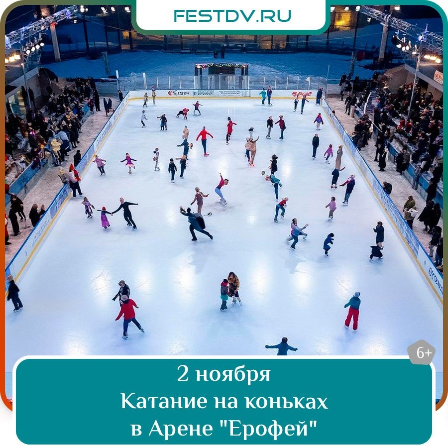 Катание на коньках в Арене «Ерофей» в Хабаровске — семейный отдых на льду Дата и время: воскресенье 2 ноября, 18:00 Место проведения: г. Хабаровск, ул. Морозова Павла Леонтьевича 83, Арена «Ерофей» Стоимость:взрослый — 350₽, детский — 250₽, прокат коньков —… #фестивалим #хабаровск #вхабаровске #отдыхдв #отдых #фестиваль Подробнее: https://festdv.ru/meropriyatiya/kalendar-sobytij/2-noyabrya-katanie-na-konkah-v-arene-erofej-habarovsk/