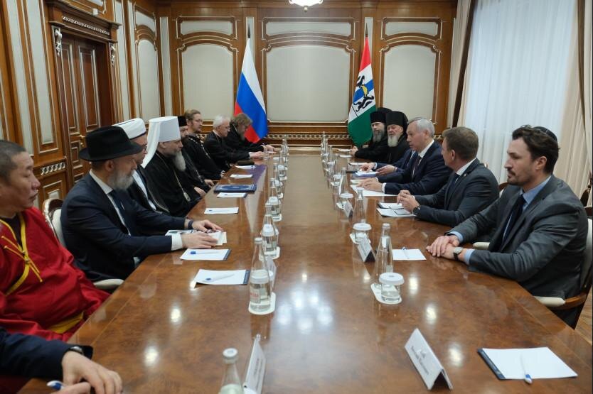 Губернатор Андрей Травников в преддверии празднования Дня народного единства провёл встречу с руководителями религиозных организаций Новосибирской области. Глава региона поблагодарил участников встречи за их усилия по сохранению в Новосибирской области межконфессионального и межрелигиозного мира и согласия на основе традиционных ценностей. «Россия в очередной раз в своей истории получила серьезный урок, не только на своем примере, но и на примере других государств, насколько опасны зерна внутреннего разлада, отсутствие внутренней целостности, идентичности, ориентирование на какие-то внешние установки. Почему этот урок показателен и полезен? Потому, что мы вернулись на свой, российский путь, и это не только позиция государственной власти – это внутренний запрос общества. Мы видим, с какой готовностью наш народ воспринимает декларацию традиционных ценностей, которые были закреплены Указом Президента, какое сплочение вокруг Президента и нашей армии в ходе, по нашему мнению, священной борь