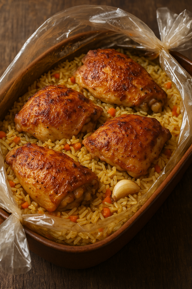 Многие почему-то уверены, что рис в духовке — это сложно и долго. А я хочу развеять этот миф. Делюсь своим любимым рецептом: курица с рисом в духовке в рукаве. Без стояния у плиты, без лишней посуды и переживаний, что рис получится сухим или разваренным. Все выходит идеально: рассыпчатый рис, сочная курочка и ароматный домашний соус прямо внутри рукава. Я готовлю так уже не первый год — рецепт выручает, когда нужно быстро и вкусно накормить семью. Попробуйте хотя бы раз, и вы тоже полюбите этот способ. Ингредиенты на 4 порции: Подойдет и филе, но с частями на косточке получается особенно сочная курочка и насыщенный вкус соуса. Всего 5–7 минут — и можно собирать блюдо. Важно: рис полностью готовится в соусе, который образуется при запекании — никакой лишней жидкости не требуется. Этот метод любят даже те, кто раньше боялся запекать рис. Если у вас семья побольше — просто увеличьте объемы ингредиентов, пропорции сохраняйте те же. Это идеальный рецепт для занятых людей: поставил — забы