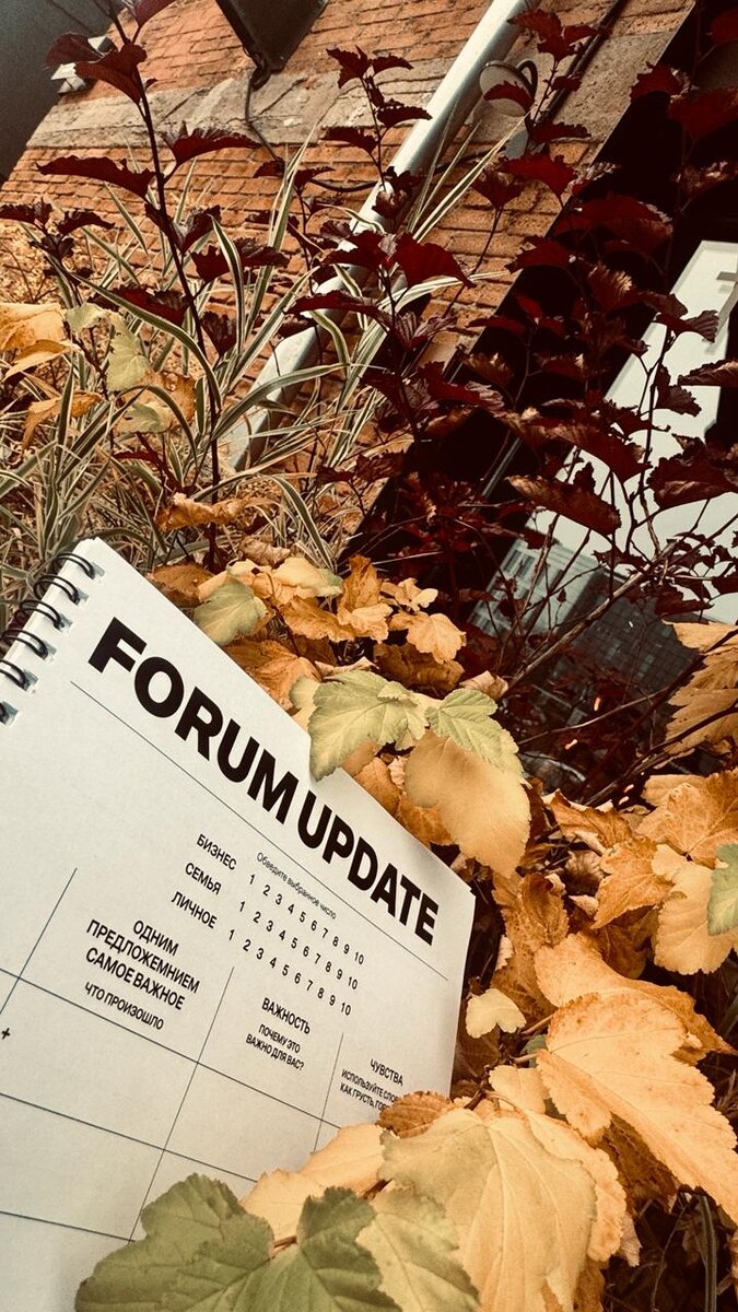 Forum Update: инструмент, который экономит время и усилия Участники форум-группы не приходят «с чистого листа». У каждого за спиной — неделя, полная событий, побед, сомнений и боли. Чтобы встретиться по-настоящему, нужно сначала обнулить шум и синхронизироваться. Для этого в начале каждой встречи мы делаем Forum Update - это не формальность, а рабочий инструмент, который даёт три вещи: 1️⃣ Быстрая калибровка. Каждый ставит оценку по трём сферам: бизнес, семья, личное. Одним предложением формулирует главное событие недели. 2️⃣ Контекст без лишних слов. Группа сразу понимает, в каком состоянии человек зашёл во встречу: где у него рост, где нагрузка, что сейчас реально важно. 3️⃣ Скорость и фокус. Нет долгих разговоров «как дела». Мы сразу выходим на конкретику — и уходим в работу по сути. Выгоды: * Чёткое понимание, кто и где находится. * Более сильные решения, потому что учтён реальный контекст участников. Forum Update = дисциплина + эффективность. Это простой инструмент, который
