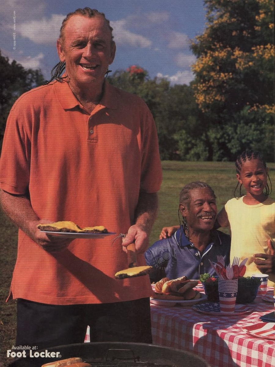 1999 год, забавная реклама кроссовок ЭндУан «Фингер Ролл», в которых играл Латрелл Спрюэлл. Семья на барбекю поголовно с косичками как у Латрелла с посылом: «ЭндУан поддерживали Спрюэлла до того как это стало модно». @bbollerroom