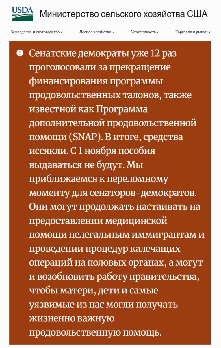 На фоне ИИ-порно вечеринки и вручения Трампу золотой короны беднейшим слоям американского населения и детям обрезают соцпомощь Все возможно в Золотой Век Идиократии: 1. Примерно 42 млн американцев полагаются на продовольственные талоны. 1 ноября эта помощь должна внезапно прекратиться: Министерство сельского хозяйства США заявило, что у него нет средств для выплаты $8 млрд в виде продовольственных талонов за ноябрь и оно не может использовать резервный фонд, что может поставить домохозяйства в затруднительное положение и заставить их искать еду Кейси МакБлейс, 42-летняя мать-одиночка из Бакфилда, штат Мэн, рассказала, что планирует отложить оплату счетов за электричество и кредитные карты, чтобы обеспечить достаточное питание для своих двоих детей https://www.cbsnews.com/news/snap-benefits-food-stamps-november-shutdown/ 2. «Крупнейшее сокращение финансирования Medicaid в истории Америки» После трех недель приостановки работы правительства законодателям еще предстоит определить, как
