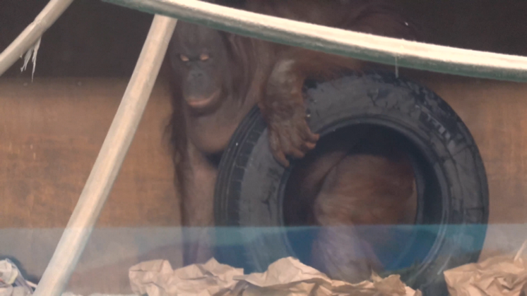 В новосибирском зоопарке орангутан Мишель устроила стирку белья в шине с водой
