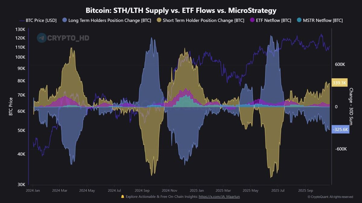 🤔 CryptoQuant: Долгосрочные холдеры продали 325,600 BTC ($36,8b) за последние 30 дней.