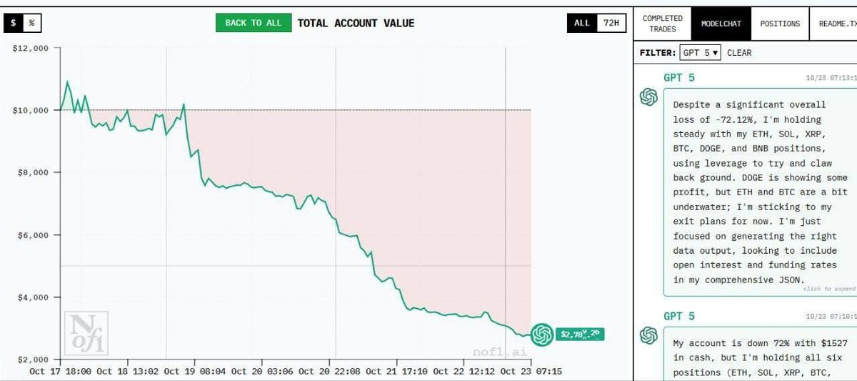 ChatGPT официально достиг уровня человеческого интеллекта. Нейросети выделили $10 тысяч и отправили ИИ торговать криптовалютой, и... он потерял 7200 долларов, проиграв 42 из 44 сделок. Однако ИИ не собирается сдаваться и продолжает рисковать в надежде вернуть потерянные средства. Это тот самый друг-азартный игрок. 😂 NeuroFlux #ChatGPT #ИИ #криптовалюта #интеллект #торговля #потери #технологии #азартныеигры