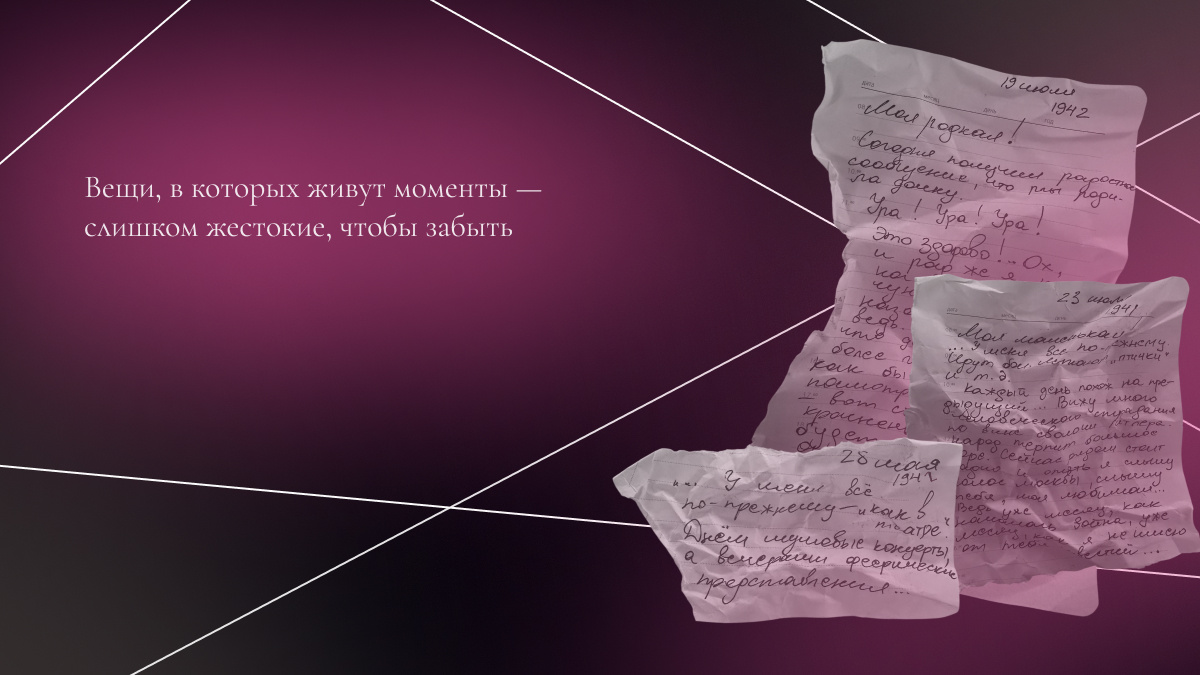 Они — вещи-призраки. Безмолвные, но полные эмоций. Как эти пожелтевшие листки — фронтовая переписка майора Сергея и его жены Кати. Он ушёл на фронт 22 июня 1941-го. Она — эвакуировалась с детьми. Вся их война — в письмах. От первого, где он пишет под обстрелом: «Я твой — до конца жизни», до последнего, от 6 мая 1945-го: «Война окончена... скоро вас увижу!». Это не просто архив. Это живая история любви и войны, полная тоски и надежды.Между этими датами — тысячи дней тоски, надежды и любви, втиснутые в строчки. Казалось бы, счастливый конец. Но что было потом? Встретились ли они? [Узнать всю историю семьи Сергея и Екатерины, а также прочитать новые истории] P.S. Это одна из тех историй, после которой по-другому смотришь на старые фотографии в семейном альбоме. Скорее смотрите мои прошлые посты, где я делюсь своими личными и важными вещами🫣>>> Прочитать первую историю — «Я открыла коробку, которую не трогала 3 года». Прочитать вторую историю — «Письмо, которое я не отправила». #вещип