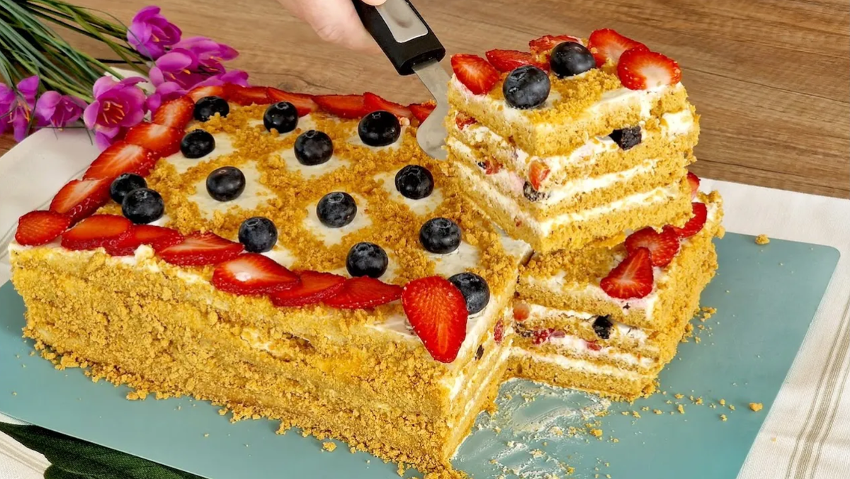 🍰 Торт за пол часа. БЕЗ РАСКАТКИ КОРЖЕЙ и БЕЗ МАСЛА. Божественный рецепт - Фруктовый Медовик.