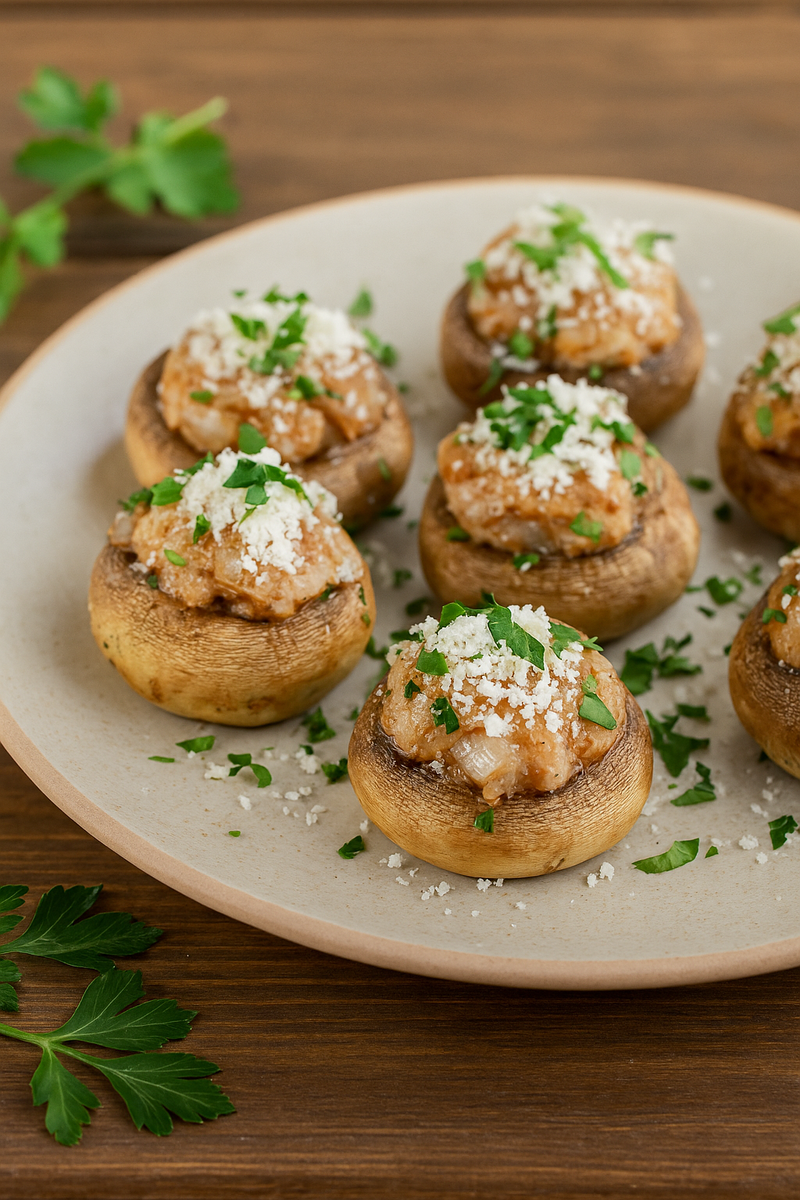 Эти фаршированные шампиньоны — идеальная тёплая закуска или лёгкий обед. Шляпки грибов запекаются до золотистой корочки, начинка получается нежной и сочной. А посыпка из тёртого тофу придаёт лёгкий сливочный вкус и делает блюдо ещё полезнее. 1. Подготовьте ингредиенты.