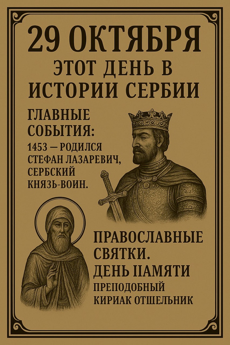 1453 — родился Стефан Лазаревич, сербский князь, воин и культурный деятель, одна из значительных фигур позднего средневековья.