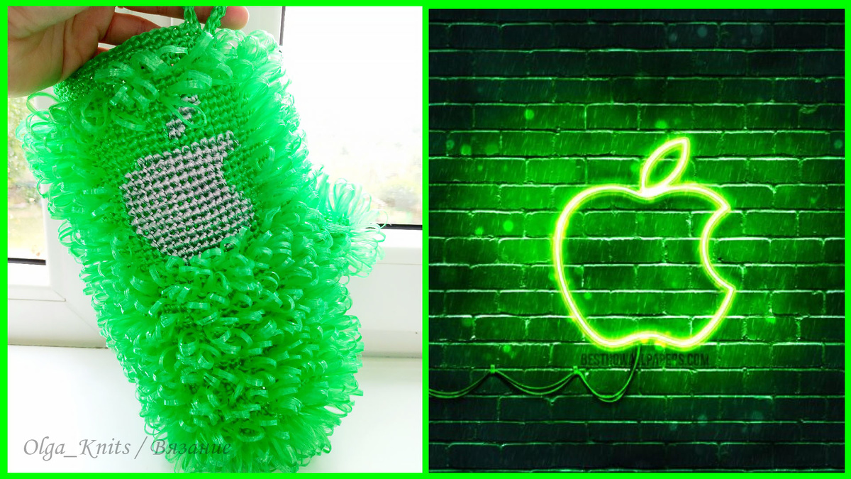 Мочалка-варежка с узором "ЯБЛОКО" / Узор по клеточкам
