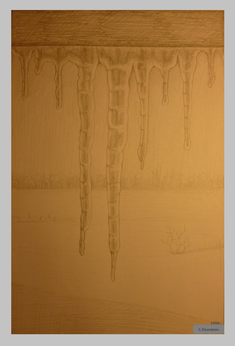 Художник, Степан Каширин. "Сосульки".(30x20см.) Бумага, карандаш.1990г.