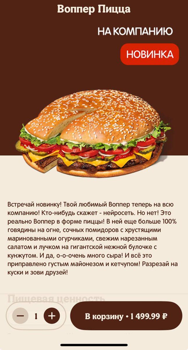 🔴Воппер-ПИЦЦУ уже завезли в Бургер Кинг — это гигантский бургер, нарезанный на кусочки для большой компании. Стоит 1500 рублей, пока гиганта можно заказать только на доставку. Срочно устраиваем встречу с друзьями 🤣 CtrlAltDelights- подписаться