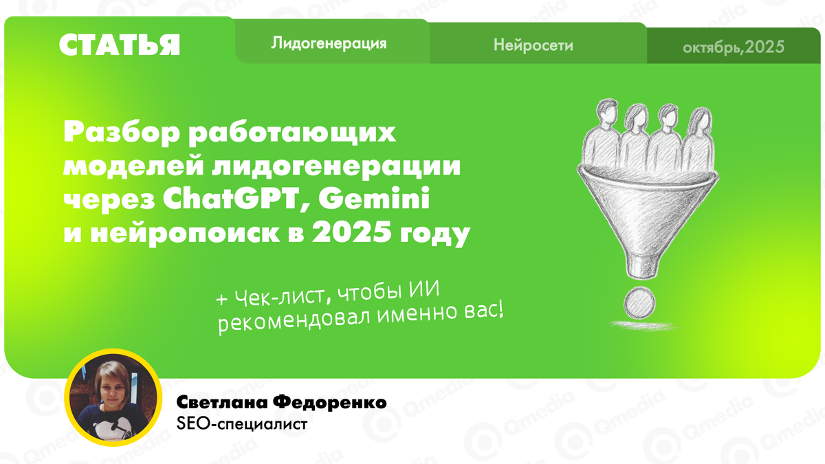 Лиды из нейросетей — это не футуристическая концепция, а работающий канал здесь и сейчас. Его ключевое отличие — непредсказуемость и отсутствие прямого контроля. Вы не можете «заплатить за клик», но можете создать такую сильную экспертную позицию и безупречное техническое состояние сайта, что нейросеть будет просто вынуждена рекомендовать вас своим пользователям.
