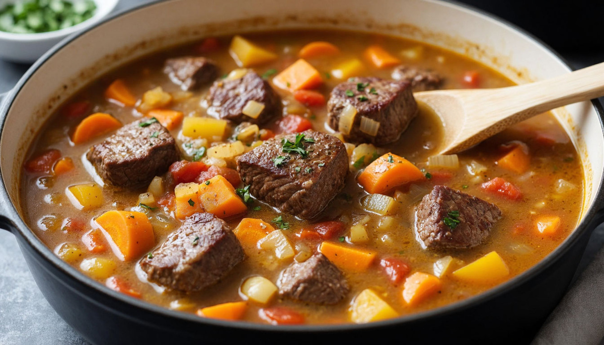 Привет, дорогой друг! Сегодня я хочу поделиться с тобой рецептом, который согреет не только тело, но и душу. Это рагу с нежной говядиной и ароматными овощами — идеальное блюдо для прохладного вечера в кругу семьи. Готовится несложно, а результат превзойдёт все ожидания! Шаг 1. Подготовка ингредиентов Шаг 2. Обжарка мяса Шаг 3. Пассеровка овощей Шаг 4. Томление Шаг 5. Финальные штрихи Выложите рагу в глубокие тарелки, украсьте веточкой петрушки и парой ломтиков багета. Для уюта добавьте свечку или тёплый плед — и вот уже атмосфера идеального вечера готова! Приятного аппетита! Надеюсь, это рагу станет вашим любимым блюдом в холодные дни. Делитесь впечатлениями в комментариях — мне будет приятно узнать, как у вас получилось. До новых кулинарных приключений!