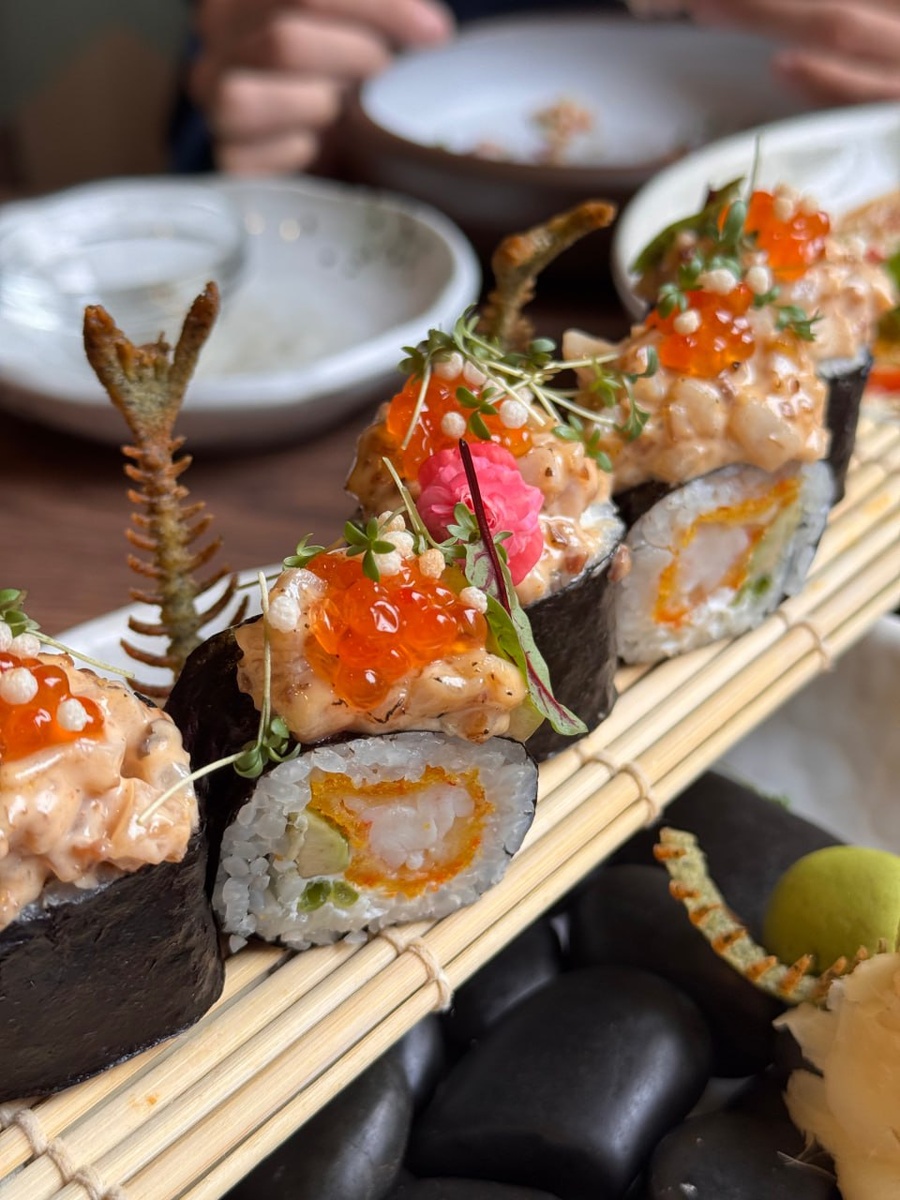 Мы завели новую привычку - по средам устраивать совместный обед в новом для нас месте и даже забронировали время для этого в семейном календаре. Осталось только завести привычку писать обзоры сразу, а не неделю спустя 🤭 В прошлую среду наш выбор остановился на Гастромании. Это небольшое, но уютное кафе с магазином деликатесов. 🦀 Основное направление - морепродукты, но есть и сыры, колбасы, вино, масло и другие продукты. Мы купили вкуснейшее новозеландское сливочное масло и котлеты из щуки (их еще не успели попробовать). Взяли на заметку богатое меню завтраков. 🕓 Завтраки по будням с 9:00 до 16:00 и в выходные с 10:00 до 14:00. Не смогли пройти мимо раздела - FUSION STREET FOOD. 🌭 Попробовали ХОТ-ДОГ с фермерской сосиской. Рита обожает хот-доги, говорит, что этот был топчик. Есть еще шаурма с крабом и шаурма с морепродуктами, роти с пастрами из индейки и цукини и более прозаичные варианты: шаурма с курицей, бургер и хот-дог с рваной свининой. Я заказал роллы, честно не ждал от н