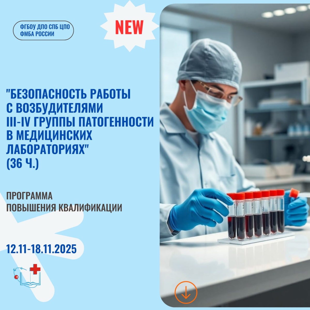 π―ΠΡΠΊΡΡΠ²Π°Π΅ΠΌ Π½Π°Π±ΠΎΡ Π½Π° Π½ΠΎΠ²ΡΡ ΠΏΡΠΎΠ³ΡΠ°ΠΌΠΌΡ ΠΏΠΎΠ²ΡΡΠ΅Π½ΠΈΡ ΠΊΠ²Π°Π»ΠΈΡΠΈΠΊΠ°ΡΠΈΠΈ - Β«ΠΠ΅Π·ΠΎΠΏΠ°ΡΠ½ΠΎΡΡΡ ΡΠ°Π±ΠΎΡΡ Ρ Π²ΠΎΠ·Π±ΡΠ΄ΠΈΡΠ΅Π»ΡΠΌΠΈ IIIβIV Π³ΡΡΠΏΠΏΡ ΠΏΠ°ΡΠΎΠ³Π΅Π½Π½ΠΎΡΡΠΈ Π² ΠΌΠ΅Π΄ΠΈΡΠΈΠ½ΡΠΊΠΈΡ Π»Π°Π±ΠΎΡΠ°ΡΠΎΡΠΈΡΡ Β»