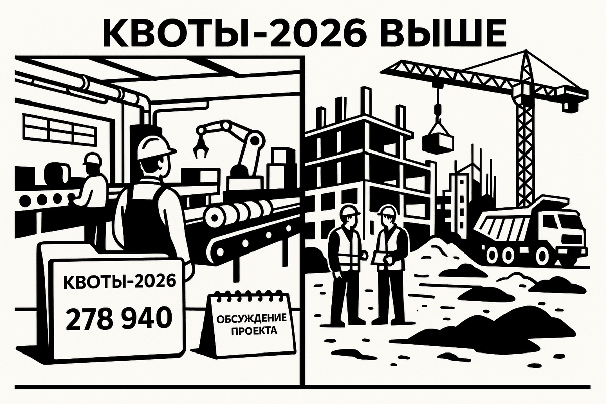Министерство труда предложило в 2026 году увеличить квоту на привлечение квалифицированных иностранных работников из визовых стран до 278,9 тыс. разрешений — это примерно +18,7–20% к уровню 2025 года. Проект постановления размещён для общественного обсуждения; основная потребность заявлена промышленностью и стройкой. По данным Интерфакса, «Коммерсанта», РБК, Lenta.ru и Парламентской газеты. pnp.ru+4Interfax.ru+4Коммерсантъ+4 Что произошло.
