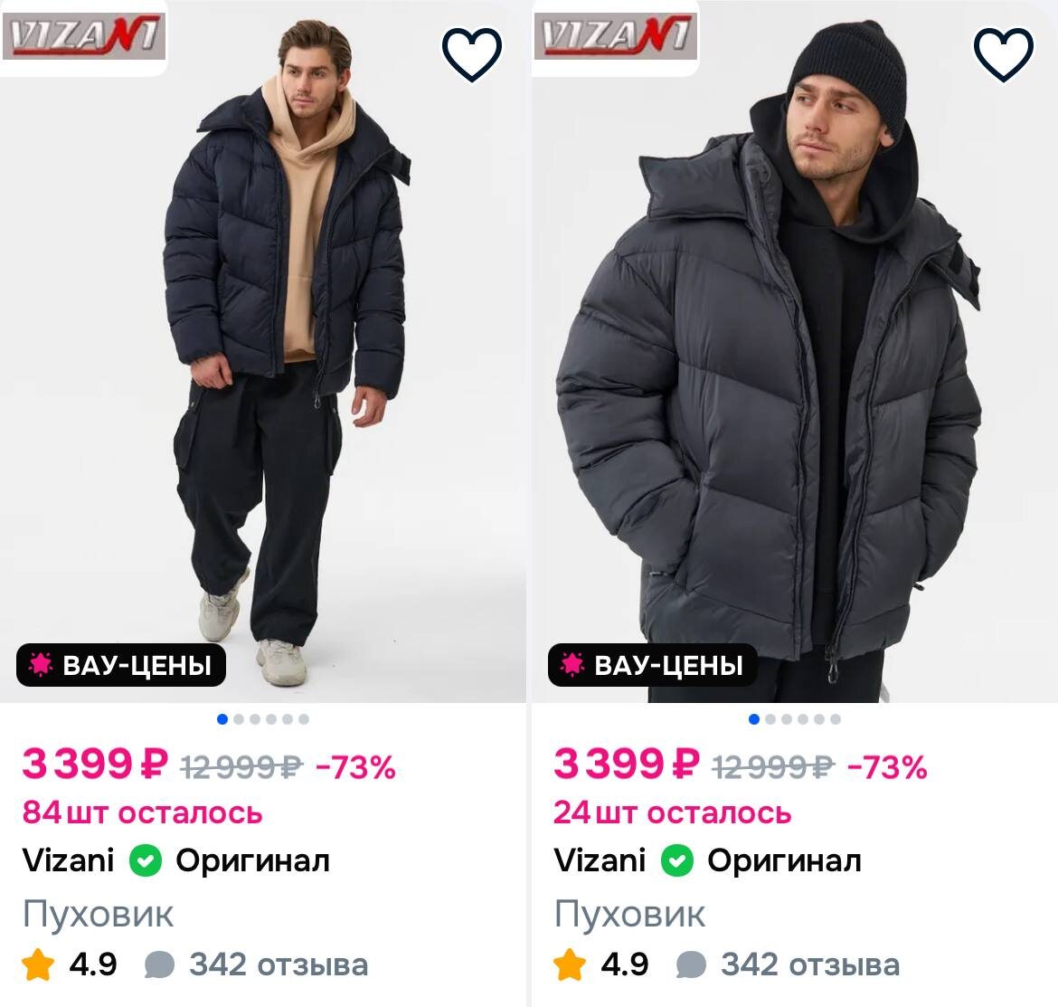 Пуховик Vizani (размеры 48-58) - 1 шт по этой цене https://ozon.ru/t/4eWT6zE #длянего