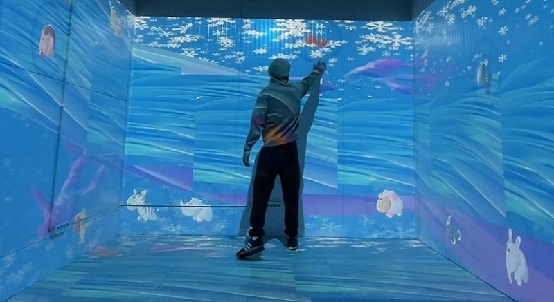 Технология работает следующим образом: мощные проекторы транслируют изображения на все поверхности комнаты, датчики отслеживают движения участников, а специальное программное обеспечение в реальном времени изменяет визуальный и звуковой контент в зависимости от действий детей. Например, когда ребенок наступает на виртуальный лист на полу, тот шуршит и разлетается на частички.