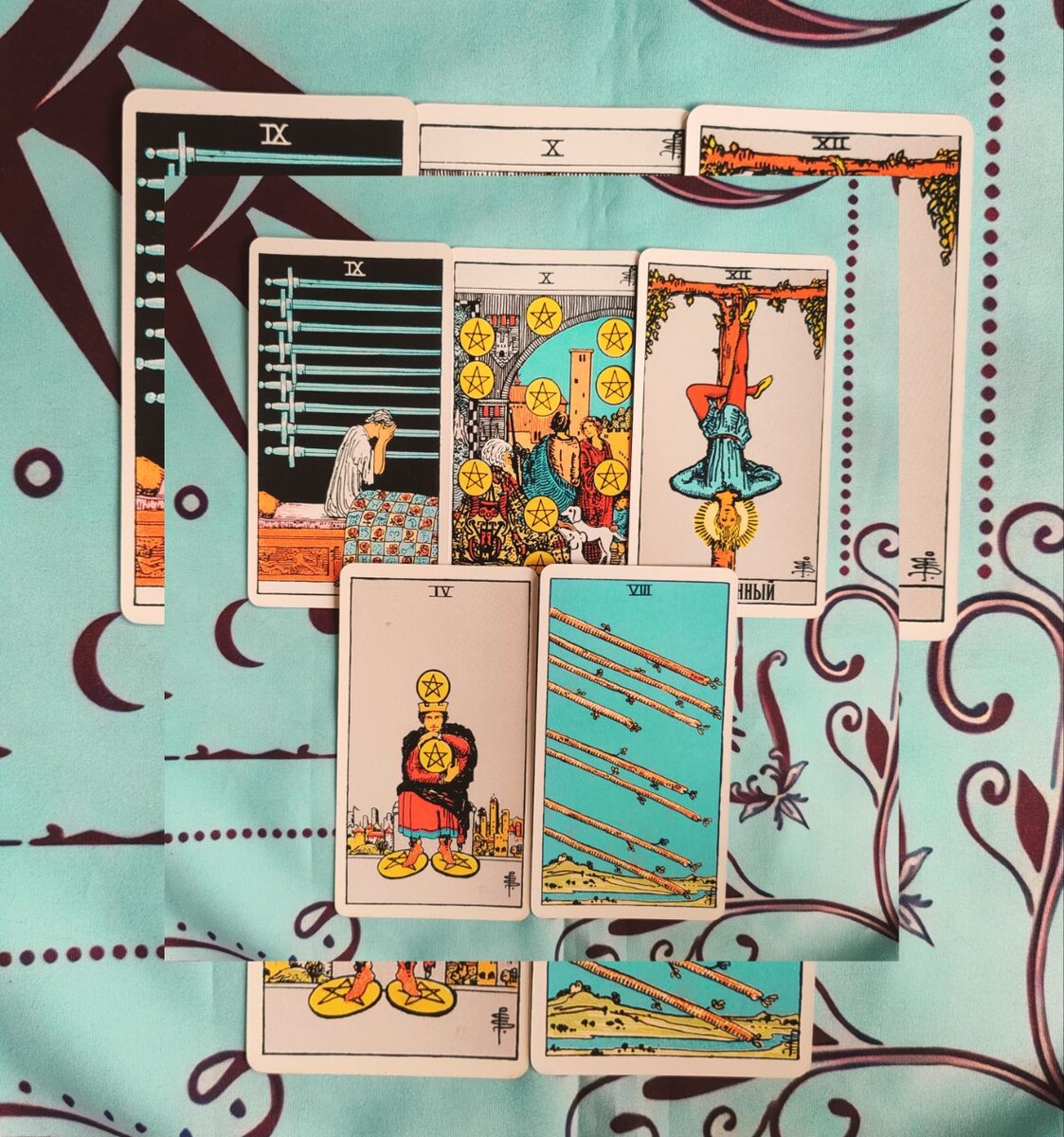 · 10 Пентаклей: Говорит о благополучии, поддержке семьи, наследстве, надежных долгосрочных перспективах. Это может быть решение жилищного вопроса, укрепление семейных уз, успех в бизнесе.