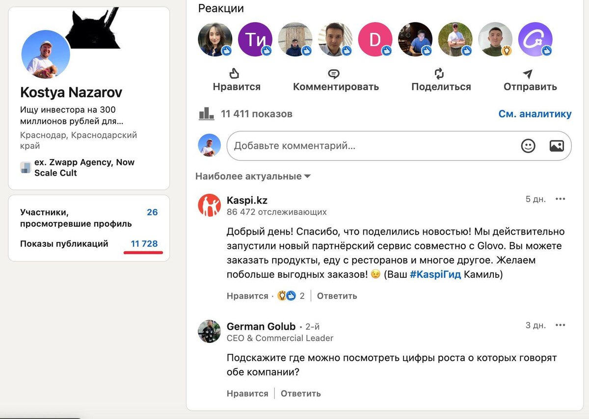 — Сейчас посмотрю. Охренеть, пост набрал 11 тыс. показов!