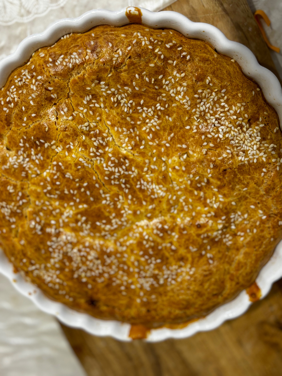 Этот пирог отлично подошел к ужину и испарился за считаные минуты. Продукты (на 6 порций) Для теста: Для начинки: Начинаем готовить начинку. Отвариваем яйца ( вкрутую 10 минут после закипания). Шинкуем тонко капусту, лук и тушим до готовности минут 30 на медленном огне, не забывая добавить соль, перец, укроп добавляем вконце. После того как яйца мы остудили и порезали, добавляем к тушенной капусте яйца. Наша начинка готова. Разогреваем духовку до 190 градусов и приступаем к приготовлению теста. Берем миску и добавляем майонез, сметану, яйца, перемешиваем жидкие ингредиенты и добавляем просеянную муку, разрыхлитель и соль. Перемешиваем. Тесто должно получиться как на оладьи. Застилаем форму пергаментом или смазываем маслом и сверху тонкий слой муки (совсем чуть-чуть). Заливаем немного меньше половины нашего теста, сверху выкладываем начинку ровным слоем. Далее заливаем оставшееся тесто сверху и распределяем по всему периметру. Посыпаем кунжутом. Ставим в духовку разогретую н