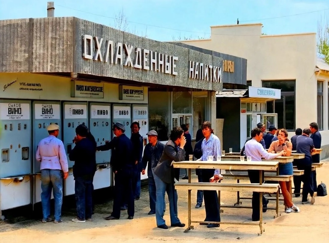 Последний разговор состоялся случайно и уже не помню по какому поводу, но я рассказал о том, что в советское время в холлах крупных торговых магазинов и пассажей, а в летнее время и на улице стояли большие вендинговые аппараты по продаже за копейки пива и сухого вина – такие, как с газированной водой, но, возможно, по причине более высокого спроса, выше и шире водяных. Таких островков всеобщего счастья было много, беспорядка и свинства возле них не было, останавливались возле них и старики, и молодые, и с детьми, и с жёнами, и это было хорошо! Мои собеседники поверили мне с трудом, хотя допускаю, что не поверили вовсе. Кстати, несовершеннолетним попасть к этому источнику влаги было затруднительно и не по причине некого особого надзора за ним со стороны правоохранителей, а исключительно по жёсткой позиции самих граждан, которые, абсолютно не опасаясь за свои жизнь и здоровье, в состоянии были не допустить нарушение социальных правил со стороны несовершеннолетних. Словом, всё жило и работало комфортно и без сбоев. Меня собеседники выслушали, задали несколько не помню каких вопросов, но червь сомнения, как я почувствовал, зашевелился и поедал сознание изнутри. Доказать мне было нечем, да я и не стремился, если бы не случайно найденное спустя несколько дней после разговора архивное фото из моего любимого города Горловки. Это торговая площадка возле магазина «Пассаж». Сухое вино и пиво в открытом доступе, без каких-либо ограничений по размерам торговых площадей, санэпидем-препятствий, расстояний до школ, детсадов, общественных мест и не взирая на постоянно отягчающие нашу жизнь законотворческие акты депутатской братии, по иронии судьбы, тоже носящей звание народной. Трудовой народ ещё ТОГДА был вправе жить и уже жил так, как ему нравится. Так может, назад, в будущее, через светлое прошлое? Сухое белое и пенное светлое? Хотелось бы рассказать ещё о рюмочных, но это потом: сделаем остановку по требованию, если таковое прозвучит.
