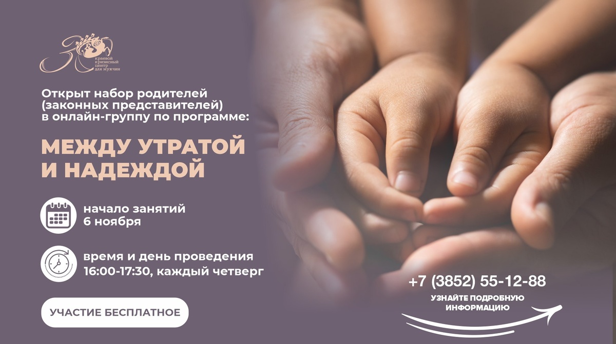 В Краевом кризисном центре для мужчин начинается новый набор родителей (законных представителей) в онлайн-группу по программе «Между утратой