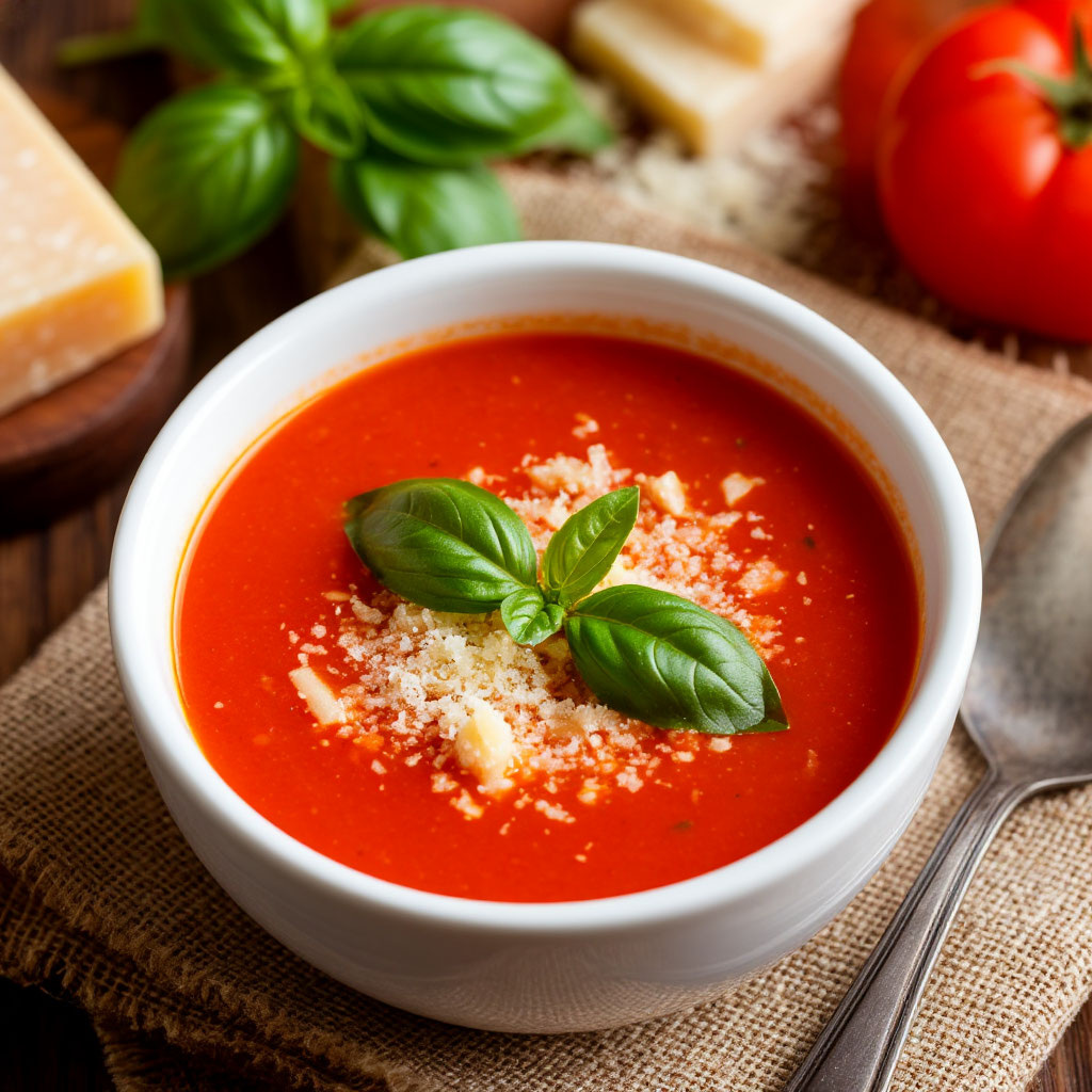 Калорийность (на порцию): около 220 ккал. Этот суп — идеальный вариант для лёгкого ужина или обеда. Он сочетает свежесть помидоров, аромат базилика и пикантность пармезана. Попробуйте — и он станет вашим любимым!