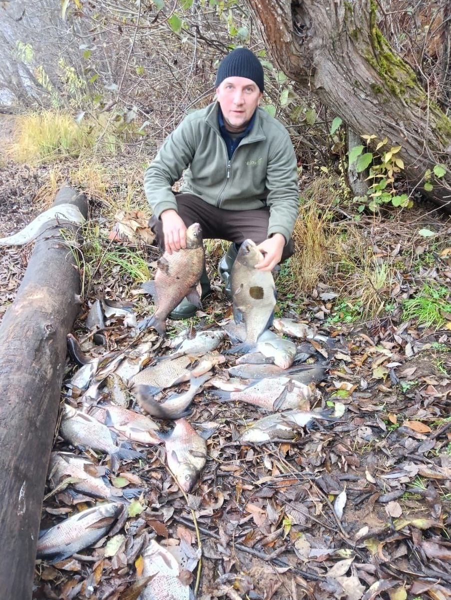 26.10.25 🚩 Река Волхов Ниже ГЭС. Дистанция 17-28м., опарыш-червь-опарыш. Приехали ночью, рыбаков море, от моста в Юшково до Немятово, еле нашли место. Воды очень мало, не припомню такого, из-за этого, берега́, где раньше не забросить фидер, теперь широкая площадка. По рыбе не очень, пара 2шек(1967 и 2124), тройка полторашек, остальное, от 350гр до 1кг, а также небольшой налимчик. Общую не взвешивали))) Домой как раз этих троих и взяли, остальных утопили. Рыбалкой довольны. Тихо, тепло))))