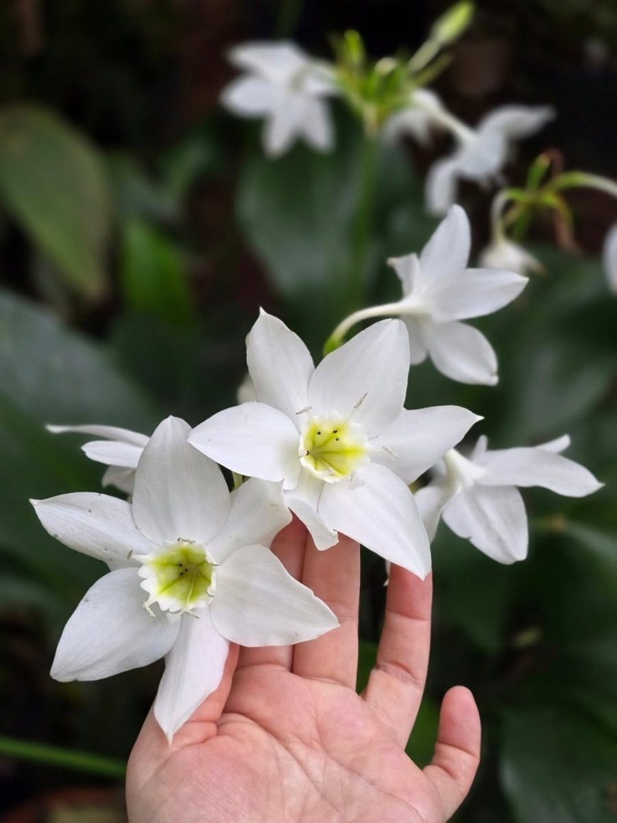Π°ΡΠΈΡ, ΡΠ°ΠΊΠΆΠ΅ ΠΈΠ·Π²Π΅ΡΡΠ½ΡΠΉ ΠΊΠ°ΠΊ "ΠΠΌΠ°Π·ΠΎΠ½ΡΠΊΠ°Ρ Π»ΠΈΠ»ΠΈΡ", Π° Π² ΡΠΎΠ²ΡΠ΅ΠΌΠ΅Π½Π½ΠΎΠΉ ΡΠΈΡΡΠ΅ΠΌΠ°ΡΠΈΠΊΠ΅ Π£ΡΡΠ΅ΠΎΠ»ΠΈΠ½Π°, β ΡΡΠΎ ΠΊΠΎΠΌΠ½Π°ΡΠ½ΠΎΠ΅ ΡΠ°ΡΡΠ΅Π½ΠΈΠ΅ Π½Π΅Π²Π΅ΡΠΎΡΡΠ½ΠΎΠΉ ΠΊΡΠ°ΡΠΎΡΡ, ΠΊΠΎΡΠΎΡΠΎΠ΅ ΡΠ΅Π½ΠΈΡΡΡ Π·Π° ΡΠ²ΠΎΠΈ ΠΈΠ·ΡΡΠ½ΡΠ΅ Π±Π΅Π»ΡΠ΅ ΡΠ²Π΅ΡΡ ΠΈ Π²Π΅Π»ΠΈΠΊΠΎΠ»Π΅ΠΏΠ½ΡΡ Π»ΠΈΡΡΠ²Ρ. ΠΠ΅ΡΠΌΠΎΡΡΡ Π½Π° Π½Π°Π·Π²Π°Π½ΠΈΠ΅, ΠΎΠ½ ΡΠ²Π»ΡΠ΅ΡΡΡ Π½Π΅ Π»ΠΈΠ»ΠΈΠ΅ΠΉ, Π° ΠΏΡΠ΅Π΄ΡΡΠ°Π²ΠΈΡΠ΅Π»Π΅ΠΌ ΡΠ΅ΠΌΠ΅ΠΉΡΡΠ²Π° ΠΠΌΠ°ΡΠΈΠ»Π»ΠΈΡΠΎΠ²ΡΠ΅. ΠΠ³ΠΎ Π³Π»Π°Π²Π½ΠΎΠ΅ Π΄ΠΎΡΡΠΎΠΈΠ½ΡΡΠ²ΠΎ β ΠΊΡΡΠΏΠ½ΡΠ΅, Π±Π΅Π»ΠΎΡΠ½Π΅ΠΆΠ½ΡΠ΅, ΠΏΠΎΠ½ΠΈΠΊΠ°ΡΡΠΈΠ΅ ΡΠ²Π΅ΡΡ, ΡΠΎΠ±ΡΠ°Π½Π½ΡΠ΅ Π² Π·ΠΎΠ½ΡΠΈΠΊ ΠΏΠΎ 3-6 ΡΡΡΠΊ Π½Π° Π²ΡΡΠΎΠΊΠΎΠΌ ΡΠ²Π΅ΡΠΎΠ½ΠΎΡΠ΅. ΠΠ°ΠΆΠ΄ΡΠΉ ΡΠ²Π΅ΡΠΎΠΊ ΠΏΠΎ ΡΠΎΡΠΌΠ΅ Π½Π°ΠΏΠΎΠΌΠΈΠ½Π°Π΅Ρ Π½Π°ΡΡΠΈΡΡ ΠΈ ΠΈΡΡΠΎΡΠ°Π΅Ρ ΡΠΎΠ½ΠΊΠΈΠΉ, ΠΏΡΠΈΡΡΠ½ΡΠΉ Π°ΡΠΎΠΌΠ°Ρ. ΠΠΎ ΡΡΡ