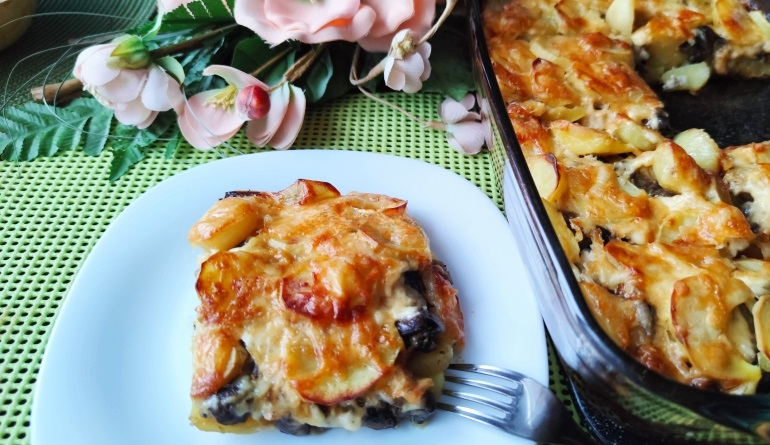 Запеченный картофель с грибами и сыром в сливочном соусе