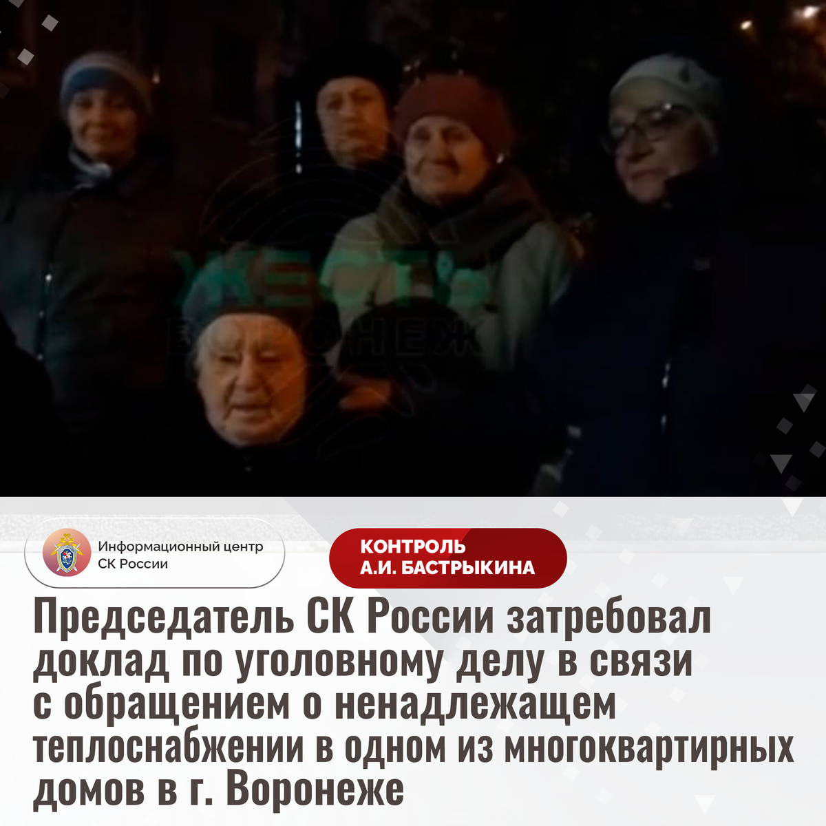 Председатель СК России затребовал доклад по уголовному делу в связи с обращением о ненадлежащем теплоснабжении в одном из многоквартирных домов в г. Воронеже В сети Интернет размещено видеообращение жильцов многоквартирного дома на улице Рижской города Воронежа по вопросу нарушения их прав на качественное теплоснабжение. В 2022 году в здании произведена замена отопительной системы, однако ее работоспособность не обеспечена. На протяжении нескольких лет подача жизненно необходимого коммунального ресурса осуществляется с перебоями, температурный режим в помещениях не соответствует установленным нормам, что привело к образованию в квартирах сырости. Местные жители замерзают, у детей развиваются заболевания. Многочисленные обращения в различные инстанции результатов не принесли. В СУ СК России по Воронежской области возбуждено уголовное дело. Председатель Следственного комитета Российской Федерации Александр Иванович Бастрыкин затребовал у и.о. руководителя СУ СК России по Воронежской обла