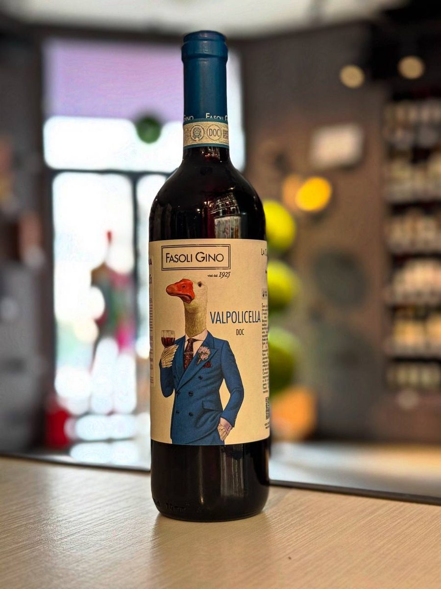 История хозяйства Fasoli Gino началась с небольшой фермы, где некогда свободно гуляли гуси. Один из них стал символом винодельни, украшая этикетку вина. Его образ — в пиджаке и галстуке — символизирует путь от простого фермерского продукта до органической утончённости. Цветок в его петлице — фацелия, сидеральное растение, которое используют как природное удобрение между рядами лоз, придерживаясь принципов биодинамики.