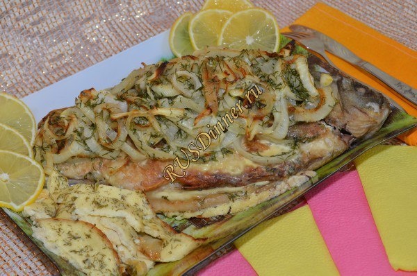 Карась в духовке От автора: Карась в духовке готовится в течении одного часа и будет вкусным угощением. Ингредиенты: Карась - 600 гр. Соль - 10 гр. Мука - 150 гр. Масло растительное - 70 мл. (для жарки) Лук репчатый - 3 шт. Сметана - 100 мл. Яйцо - 1 шт. Укроп - 1 пуч. Источник: https://rusdinner.ru/page/karas-v-duhovke