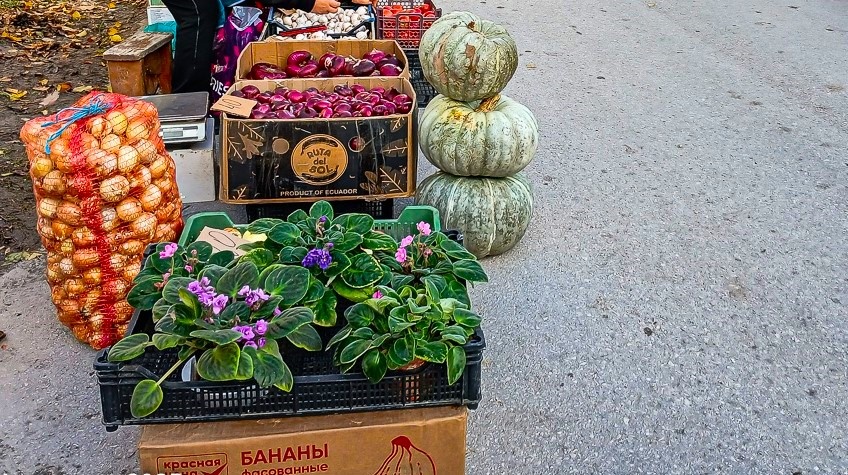 Найти цветы и саженцы можно на всей территории рынка, а также на прилегающих улицах. Но есть и постоянное место - на рыночной площади, рядом с небольшим блошиным рынком, там где торговля овощами-фруктами уже не ведётся. Отсюда и начнём.