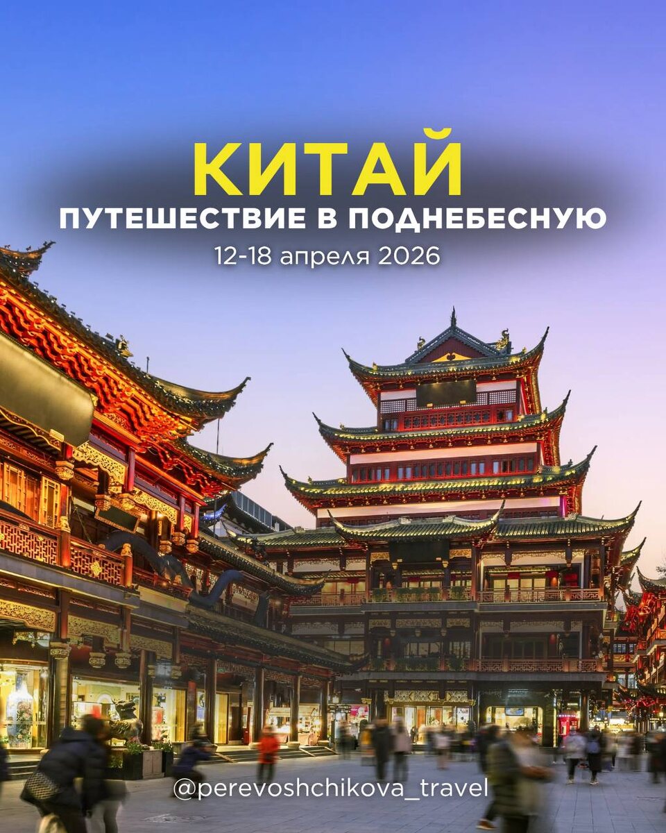 Ура, мы едем В КИТАЙ! 🇨🇳🏯 С 12 по 18 апреля вас ждёт полное погружение в страну древних традиций, удивительных контрастов и цветущих садов сакуры 🌸 (да-да, апрель для поездки выбран не случайно!) Этот тур — настоящая весенняя сказка! В программе: 📍 Прогулки по современным улицам и историческим районам Пекина и Шанхая 📍 Встреча с Великой Китайской стеной 📍 Посещение Запретного города Гугун и Храма Неба 📍 Поездка к тем самым летающим «скалам Аватара» в Чжанцзядзе 📍 Сад Радости с удивительными пагодами и цветение сакуры 📍 Настоящая китайская кухня: утка по-пекински, димсамы, лапша и чайные церемонии 📍 Шопинг в Шанхае по магазинам любимых брендов Если вы давно мечтали увидеть Китай — это ваш шанс! Ставьте «+» в комментариях или пишите @katerina_turs, и мы вышлем вам полную программу тура в Поднебесную ✨