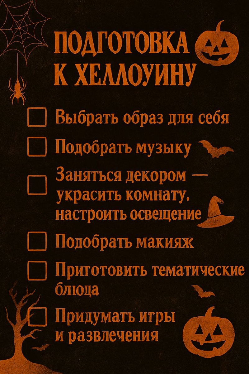 Я подготовила для вас тематический чек-лист, чтобы праздник дома получился по-настоящему волшебным и немного пугающим 👻