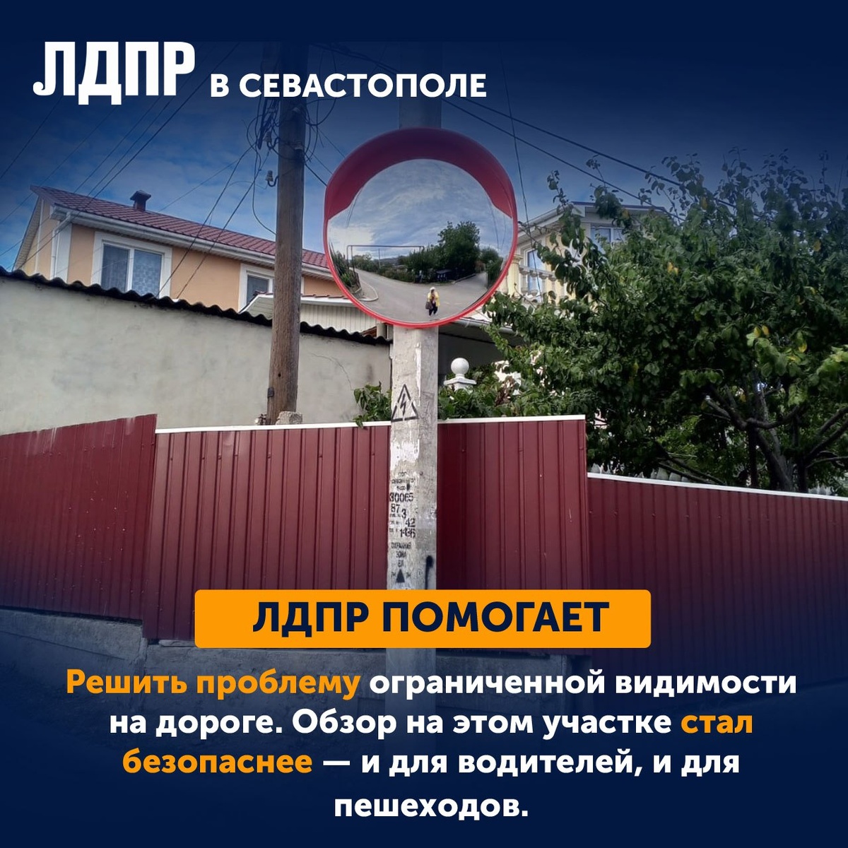 🚦 После обращения в ЛДПР на перекрестке Каспийская — Станюковича стало безопаснее В Севастополе на перекрестке улиц Каспийская и Станюковича установлено дорожное зеркало. Теперь обзор на этом участке стал заметно лучше — и для водителей, и для пешеходов 👏 Проблему ограниченной видимости обозначили местные жители, обратившиеся в общественную приемную Севастопольского отделения ЛДПР во время приема депутата Ильи Журавлева. Горожане рассказали о трудностях, с которыми ежедневно сталкиваются участники дорожного движения на этом участке. После обращения информация была направлена в Департамент транспорта и развития дорожно-транспортной инфраструктуры Севастополя и ГКУ «Дирекцию по развитию дорожно-транспортной инфраструктуры». Благодаря совместной работе активных жителей и представителей власти вопрос решен оперативно и результативно ✅ 💛 Актив Севастопольского отделения ЛДПР выражает благодарность всем, кто проявил инициативу и неравнодушие. Такие примеры показывают: общественный диа