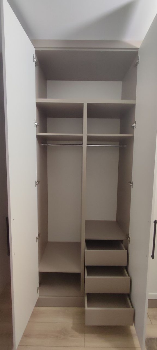 Сделали вместительный шкаф в небольшую квартиру и спрятали некрасивые коммуникации за очень приятным зелёным шкафчиком.