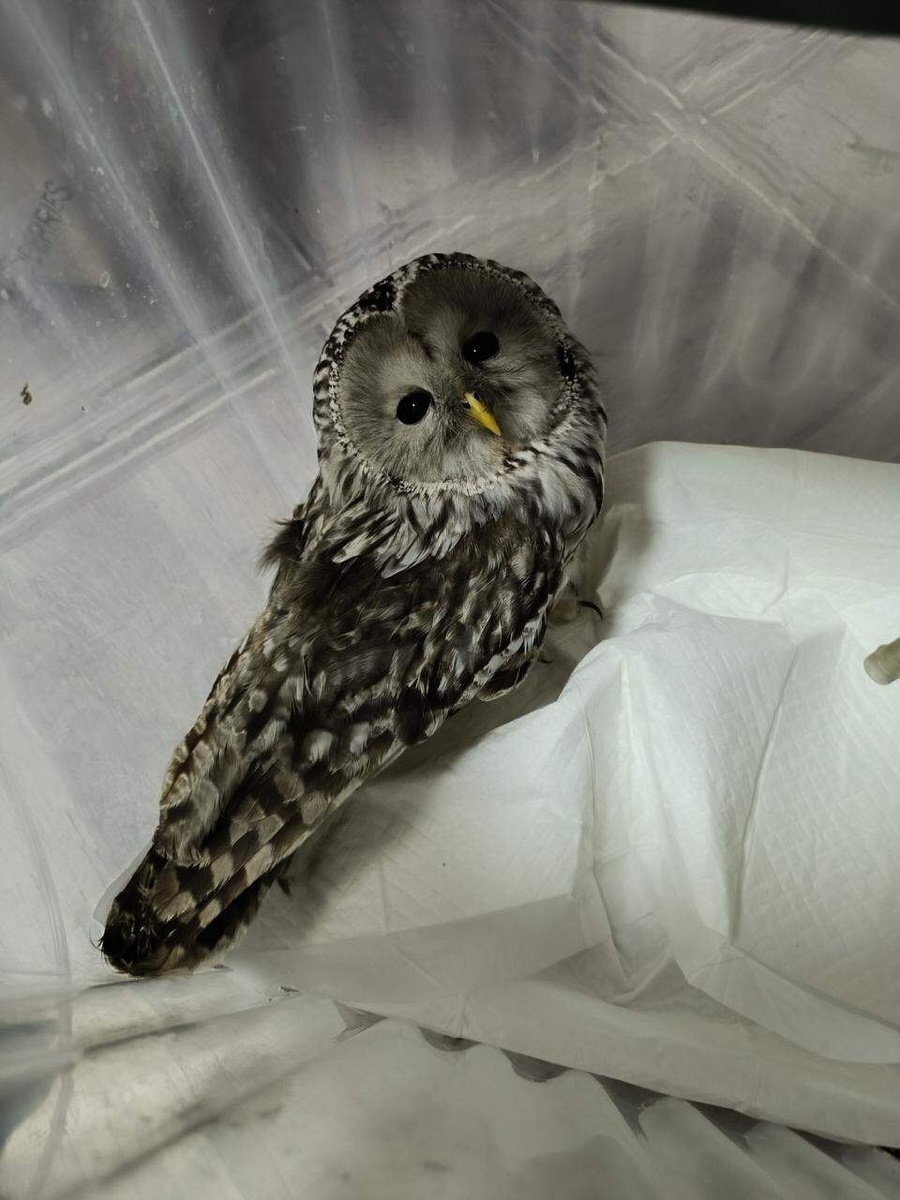 Сову подобрали на территории бывшего механического завода. Как сообщают волонтеры, в этот же день птица была доставлена в Качканар в Центр помощи птицам «Орден Феникса».Предварительный диагноз, который там поставили - черепно-мозговая травма. Птицу обследуют и отправят на лечение.