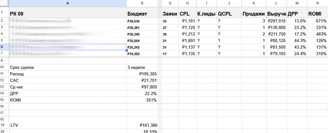 Частые грабли бизнеса Проблема №1: Отсутствие экономики маркетинга и продаж Компании не считают маркетинг и не связывают его с продажами. Если с продуктом еще как-то разбираются, то маркетинг и продажи остаются в слепой зоне. Проблема №2: Фокус на нерелевантные метрики Без правильных расчетов бизнес ориентируется на неверные показатели. Типичная ситуация приводящая к: "У нас много лидов, но продаж нет". Кейс: Консультация по оптимизации рекламы, те самые ...нет продаж... В компании подключили сквозную аналитику, но не знали, как ею пользоваться. Просто услышали про необходимость инструмента - оплатили, интегрировали с сайтом, а дальше не понимают, что делать. Что сделали за 60 минут консультации Построили дашборд, объединив данные сквозной аналитики и CRM. До этого считали только общее количество лидов и стоимость лида (CPL). Данные о продажах и выручке соотнесли с лидами и РК из которых они пришли. Посчитали ДРР, ROMI и LTV в разрезе РК. Результаты анализа в разрезе кампаний