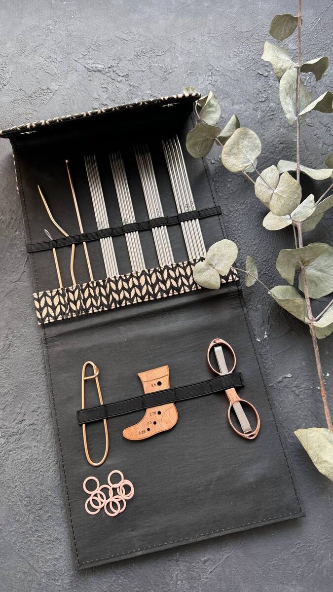 Ах, какие классные наборы для вязания носочков вчера приехали! В набор входят - 4 комплекта чулочных спиц длиной 15 см: 2,25мм, 2,5мм, 3мм, 3,5мм. - игла для шерсти, - крючок-спица, - вспомогательная спица, - ножницы, - шаблон для определения размера спиц, - булавка, - маркеры. Набор деревянных спиц Набор металлических спиц