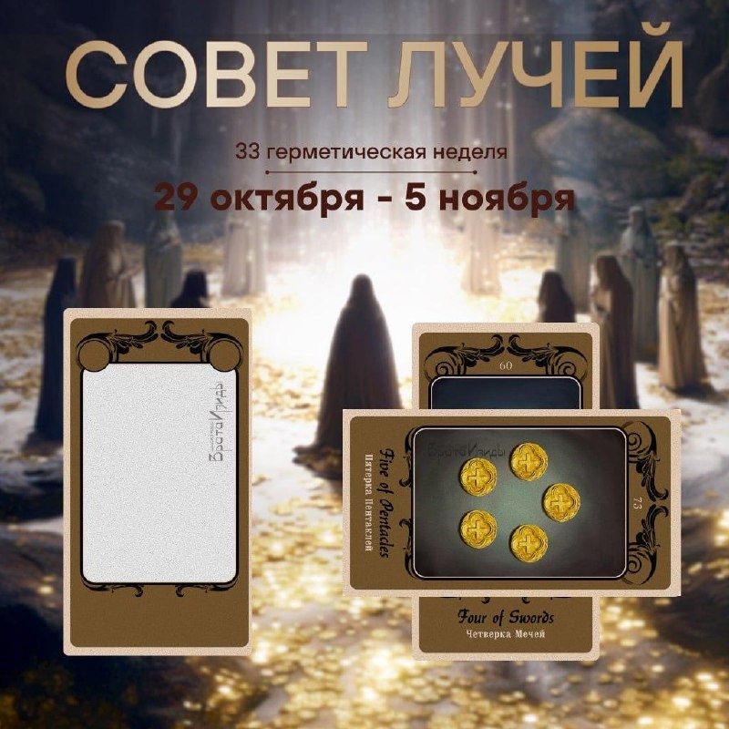 Тридцать третья герметическая неделя приглашает к осознанному и честному диалогу с собой. Наш «Лучевой Ангел» Галина Быковская обратилась за рекомендациями для нас на период с 29 октября по 5 ноября 2025 года к энергии Луча Белой Карты при помощи специального авторского расклада от Иссэт Котельниковой. "И призвала я энергию Белой Карты и спросила ее, что она порекомендует предпринять людям в период с 29 октября по 5 ноября 2025 года, для того, чтобы ее энергия проявлялась максимально мощно и гармонично. И пришел ответ. Для того, чтобы энергия Белой Карты вошла в вашу жизнь, энергия открытых порталов в новую реальность. Энергия, задача которой является расширение мировоззрения других людей на уровне социальных норм и правил, как говорится: "начни с себя". Задайтесь вопросом: а готовы ли вы к этим изменениям именно сейчас? Вот по-честному. И перед тем, как двинуться в кардинальные изменения, сделайте паузу. Возьмите тайм-аут и еще раз проверьте, достаточно ли у вас ресурсов для ваш