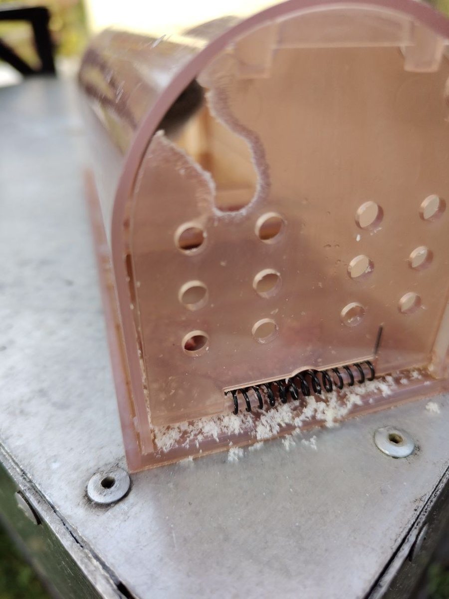 Выгрызла кусок ловушки! Будь у нее побольше времени, вырвалась бы на свободу и СГРЫЗЛА ВСЁ!