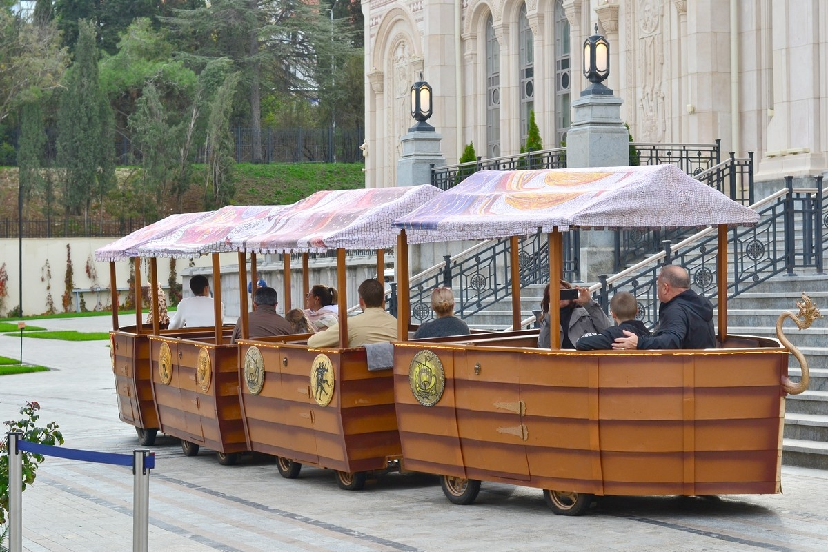 Кроме поезда Грифона появились ещё экскурсии на электромобиле на 6-8 мест, взрослым билет 2500, детский, не помню, вроде 1360 рублей. Но желающих я не видел, но, думаю, будут обязательно. Ведь в "Мрии" есть постояльцы, а там сутки 54 тысячи, так и здесь за 2500 обязательно найдутся экскурсанты...